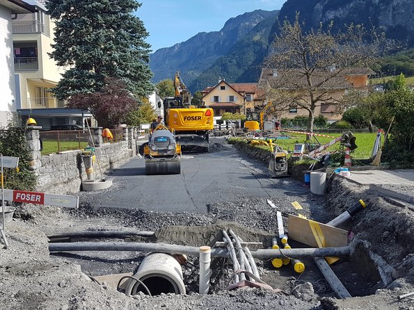 Beim Projekt Plattenbach beinhaltet der werkleitungstechnische Ausbau der Gemeinde den Neubau dieser Regenabwasserleitung (Meteorleitung) sowie eine vollständige Erneuerung der Wasserleitung und der Strassenbeleuchtung.