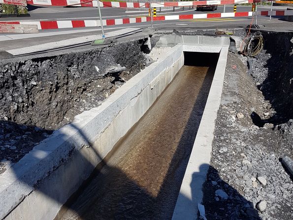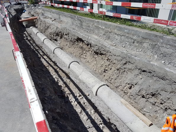 Im Ortszentrum der Gemeinde Triesen wird zurzeit die private Überbauung ‚Sonnenplatz‘ mit Wohn- und Ladenflächen realisiert. Das Baugrundstück grenzt im Norden an die Dorfstrasse, im Osten an den Kappeliweg und im Westen an die Landstrasse. Im Jahr 2019 wurden im Bereich der Landstrasse verschiedene Werkleitungen angepasst, für die Zufahrt zum erwähnten Grundstück eine Linksabbiegespur und für die Haltstelle Sonnenkreisel eine Busbucht erstellt. Nebst den durch dieses Bauvorhaben ausgelösten baulichen Strassen- und Werkleitungsmassnahmen im Bereich der Landstrasse sind auch Erweiterungen und Abpassungen im Bereich der Dorfstrasse anstehend. Der Baubereich in der Dorfstrasse erstreckt sich auf einer Länge von 210m vom Sonnenkreisel bis zur Alten Weberei. Die Dorfstrasse inklusive deren Werkleitungen wurden im Jahr 1966 erstellt und seither nicht mehr saniert. Beim geplanten Ausbau werden im Auftrag der Gemeinde Triesen die Fahrbahn, das Trottoir, die Beleuchtung, die Werkleitungen von Kanalisation, Dorfbach und Wasserleitung erneuert und ausgebaut. In diesem Zusammenhang werden auch die Werkleitungen der Liechtensteinischen Kraftwerke LKW und der Liechtensteinischen Gasversorgung LGV ausgebaut.