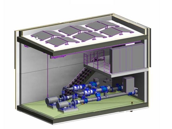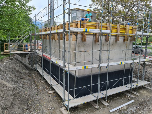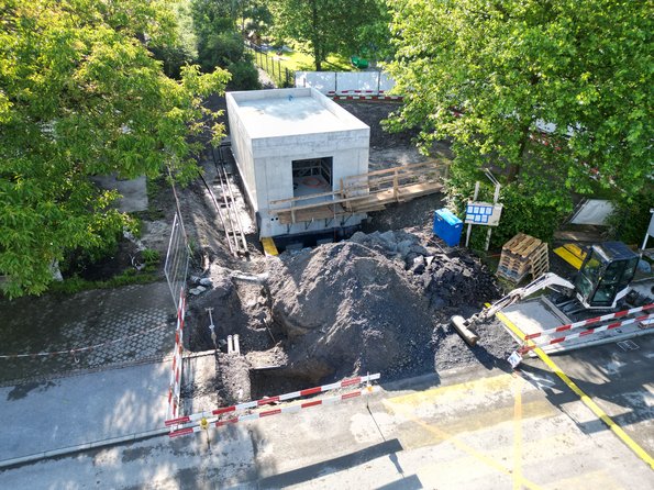 Im Untergeschoss vom Gebäude werden die notwendigen Pumpen und Armaturen eingebaut. Gegen aussen tritt das Gebäude als einstöckiger Bau in Erscheinung. Die Realisierung erfolgt im Jahr 2024.