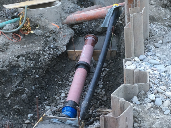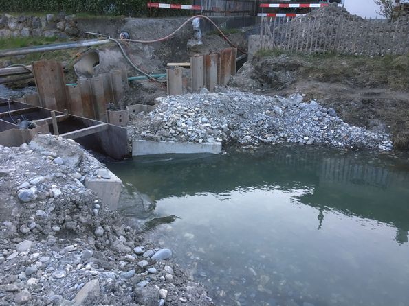 Das Gebiet südlich der Kirchstrasse und östlich des Vaduzer Giessens bis zur Landstrasse ist entwässerungs-technisch dem Teileinzugsgebiet VD5 zugeteilt. Es handelt sich im Wesentlichen um ein Teiltrennsystem. Die unverschmutzten Regenabwässer werden wo möglich versickert und teilweise in den Giessen abgeleitet. Die Schmutzwässer und die verschmutzten Regenabwässer werden mittels zwei Rohrbrücken in den auf der Westseite des Giessens liegenden Sammelkanal geführt und entlang des Giessens Richtung Norden abgeleitet. Die beiden Rohrbrücken stellen hydraulische Hindernisse dar, welche die Abflusskapazität des Gewässers einschränken. Daher werden die beiden oberirdischen Kanalisationsquerungen über den Vaduzer Giessen eliminiert und durch unterirdische Rohre ersetzt.